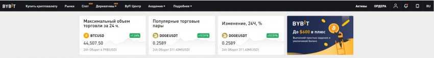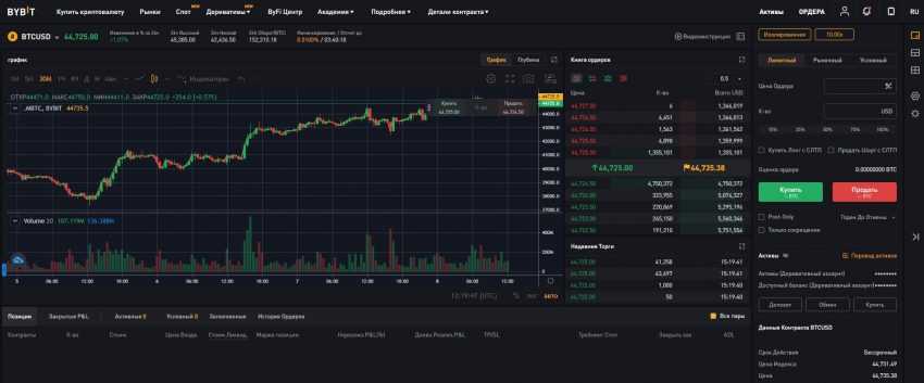 Интерфейс биржи Bybit