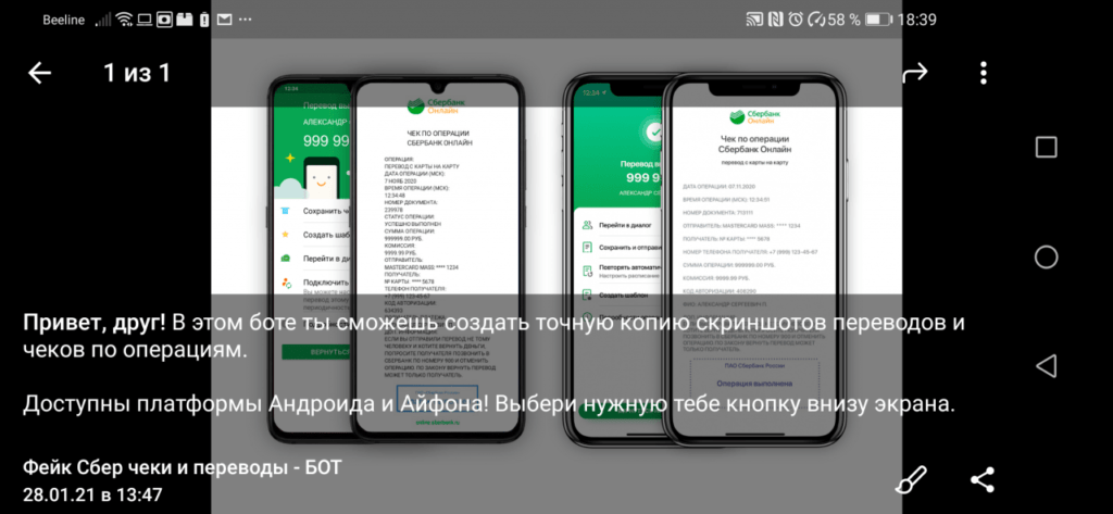 ❗️ В Telegram появился бот, который генерирует скриншоты денежных переводов в Сбербанк Онлайн