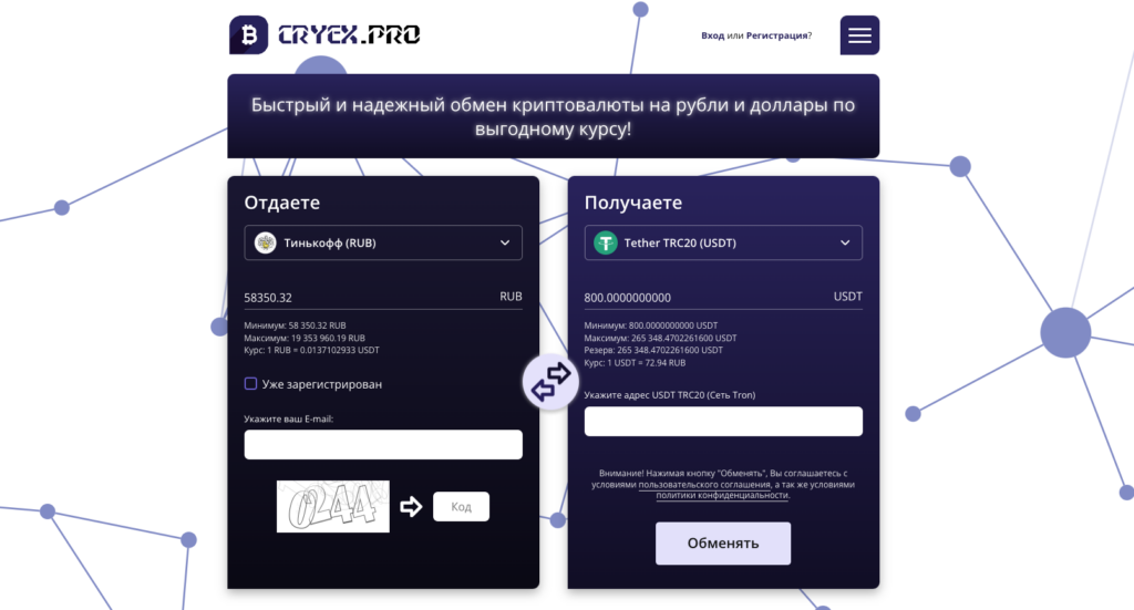 Криптообменник Cryex