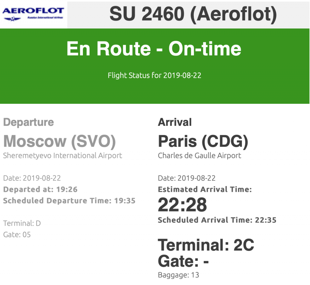 И действительно, давайте обратимся к сайту аэропорта Парижа CDG. Вот, вчера рейс RC425 отчалил от гейта C87 терминала 2С.