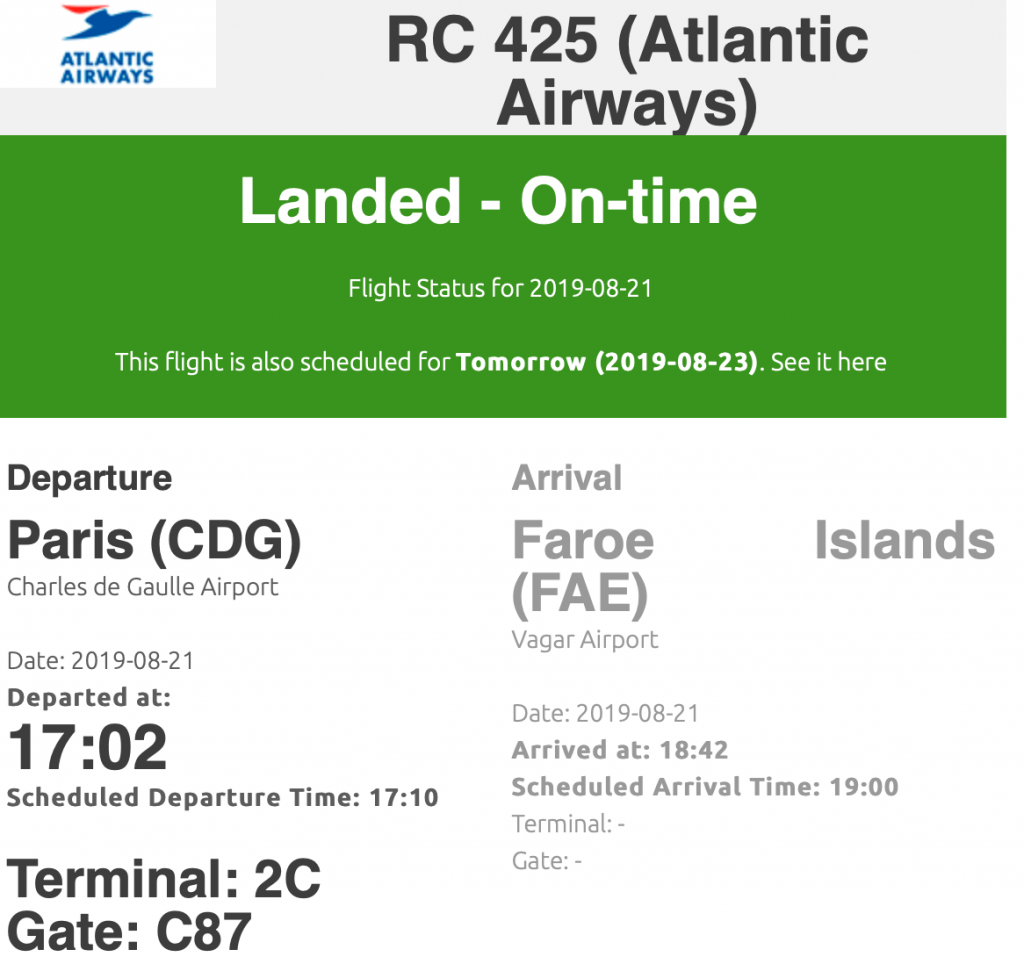 Теперь нам надо улететь на Фарерские острова. Как раз пару месяцев назад, 1 июля, единственная фарерская авиакомпания Atlantic Airways открыла прямые рейсы в Париж.