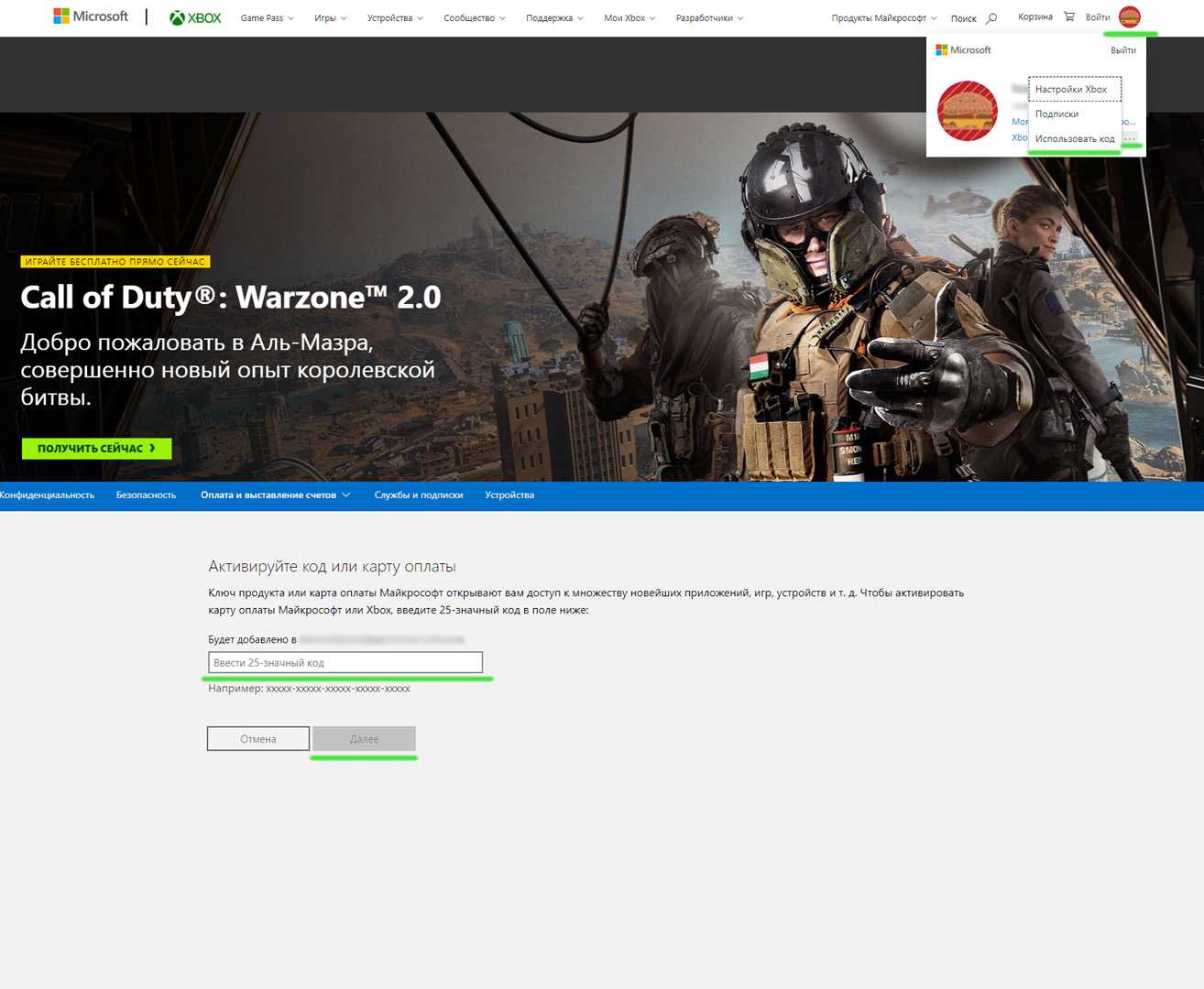 - Активируйте ключ игры. На консоли Xbox зайдите в «Магазин», затем в боковом меню выберите раздел «Активировать» и введите ключ. На ПК или телефоне перейдите на сайт Microsoft и активируйте код в браузере.