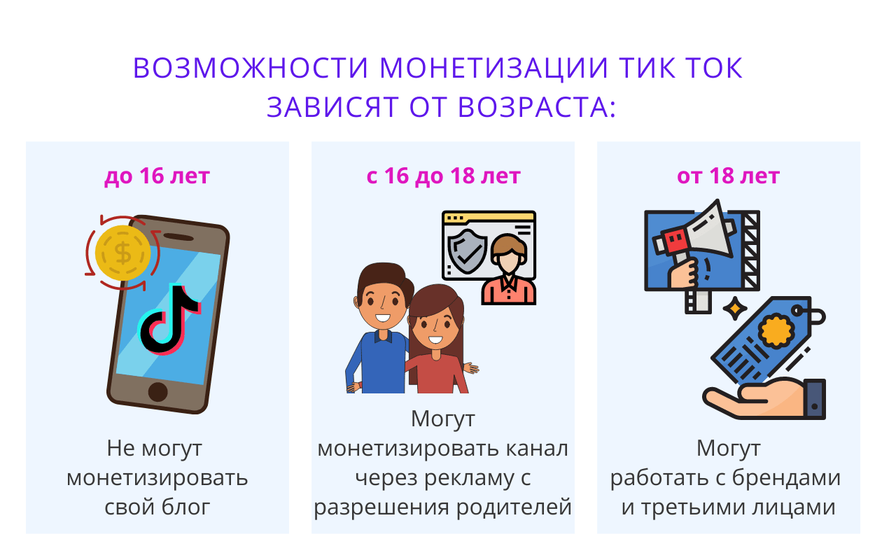 Кстати, на том же сайте есть приметка, в которой говорится о том, что самостоятельно зарабатывать в ТикТоке разрешается только пользователям 18+. Если ребенку 16 лет, требуется разрешение родителей.