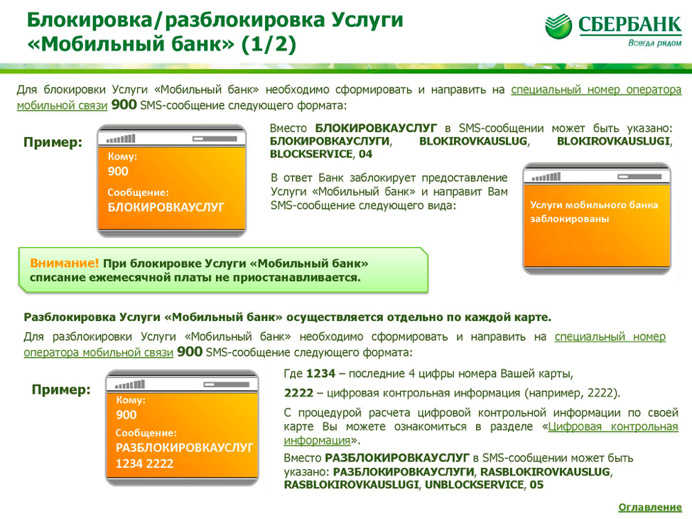- Отключение услуг Сбербанка Онлайн.