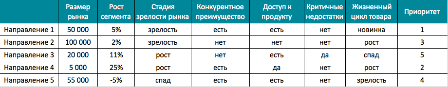 Под направлениями бизнеса в данной таблице понимаются продукты компании: конкретные ассортиментные линейки, ключевые запуски новинок, поддержка топовых продуктов-локомотивов, укрепление конкурентоспособности отдельных товаров или услуг.