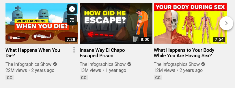 Превью похоже на тизер вашего видео. Зрители должны иметь возможность угадать контекст видео, взглянув на ваше превью. В то же время, вы не должны показывать слишком много. The Infographics Show вызывает любопытство в заголовках своих превью. Марка популярна тем, что представляет научные факты в интересной форме. Они применяют тот же принцип к заголовкам своих превью и получают миллионы просмотров.