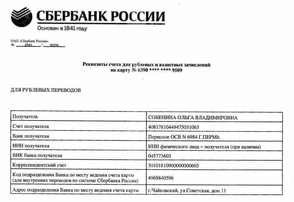 Как узнать реквизиты Сбербанка для перечисления на счет?
