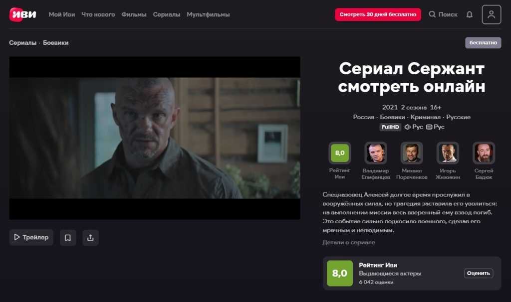 На странице фильма или сериала вам будет доступен набор бесплатных способов просмотра: