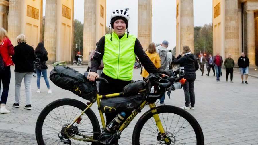 Дженни Грэм в Берлине после того, как совершила кругосветное путешествие на велосипеде.
