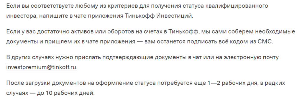 Получение статуса доступно только владельцам пакета «Премиум». Чтобы стать квалифицированным инвестором, нужно: