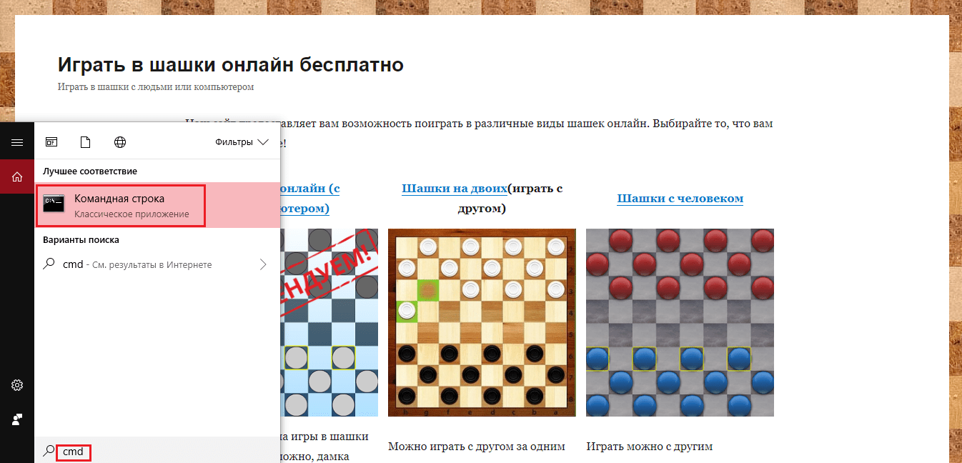 Для ОС Windows (введите в поиске «cmd» или «Командная строка»)