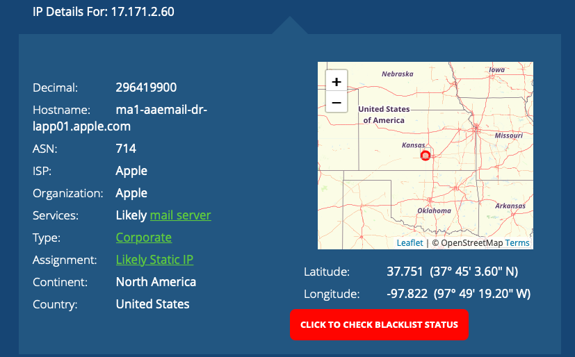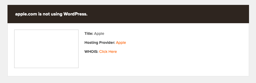 В нашем случае мы видим, что сайт не использует WordPress вовсе, а сервер находится во владении компании Apple. По крайней мере, корпорация решила выдать именно такую информацию.