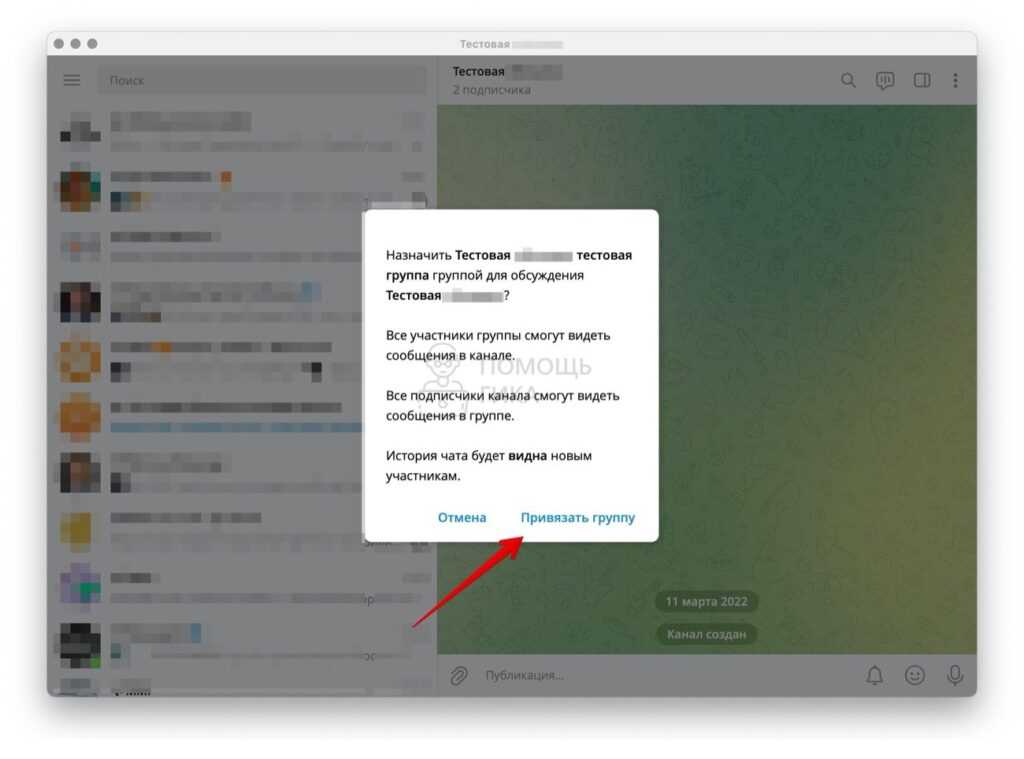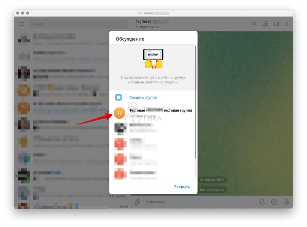 - Телеграм предложит выбрать группу для обсуждения или создать новую.