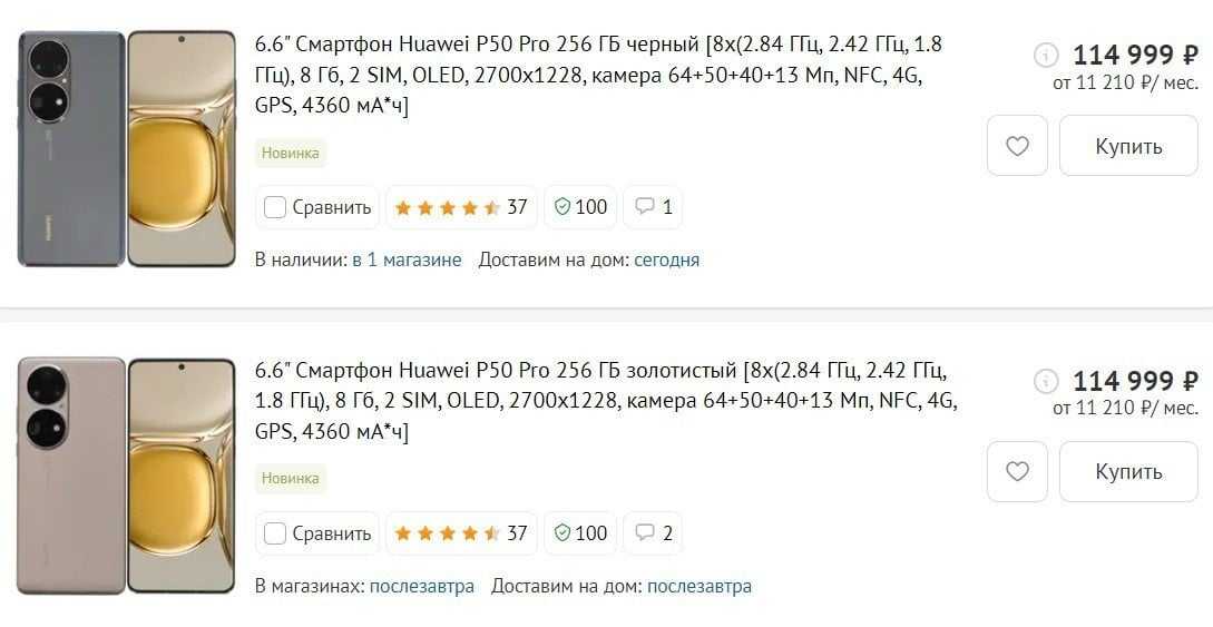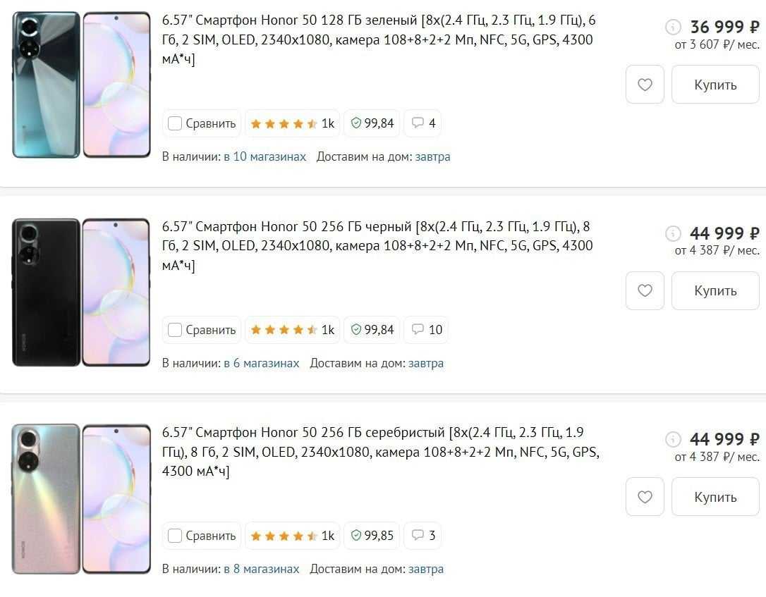 А можно не париться и обратить внимание на Honor 50. Смартфон стоит почти в 3 раза меньше, чем Huawei P50 Pro, но зато идет с предустановленными приложениями от Google, с тем же 120-герцовым экраном, быстрым процессором Qualcomm Snapdragon 778G и со сверхбыстрой зарядкой — смартфон заряжается на 50 процентов за 20 минут