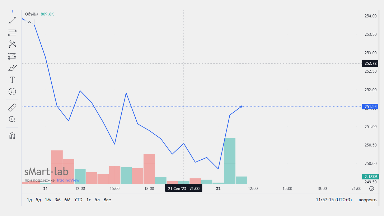 График инструмента имеет временной интервал