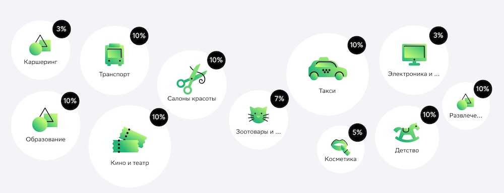 В бонусной программе есть уровни. Меняются они раз в квартал. Если успешно выполнять задания а-ля «снимайте наличными не более 10% от суммы операций за месяц«, можно будет получить доступ к категориям повышенного кэшбэка: