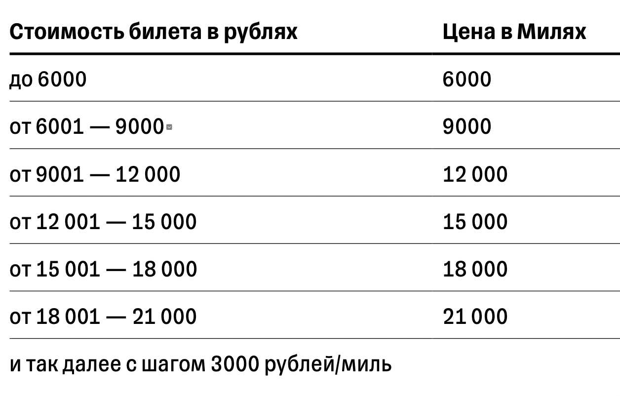 Как потратить мили? Есть специальная таблица. И да, она не совсем в нашу пользу