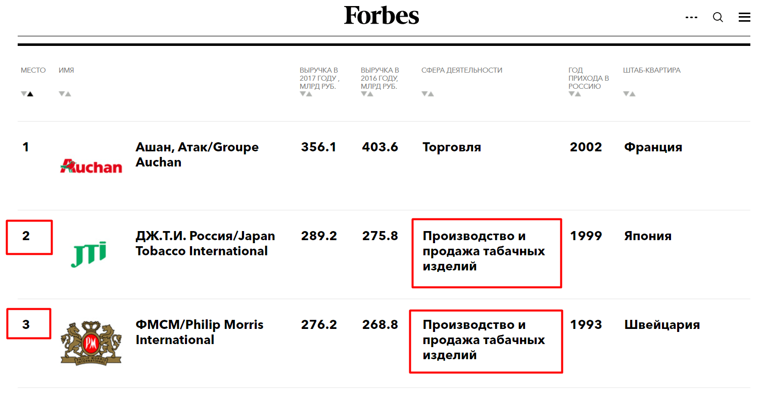 Вы только подумайте 2 и 3 место в списке богатейших иностранных компаний в РФ — табачные.
