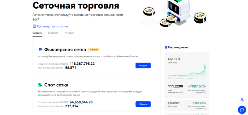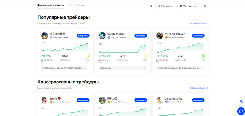 Копитрейдинг. Данная функция предоставляет возможность копирования сделок более опытных трейдеров на спотовом или фьючерсном рынке. Можно выбрать стиль торговли пользователя под себя, а также ознакомиться со статистикой его торговли перед тем, как начать копировать сделки, чтобы минимизировать риск потери средств.