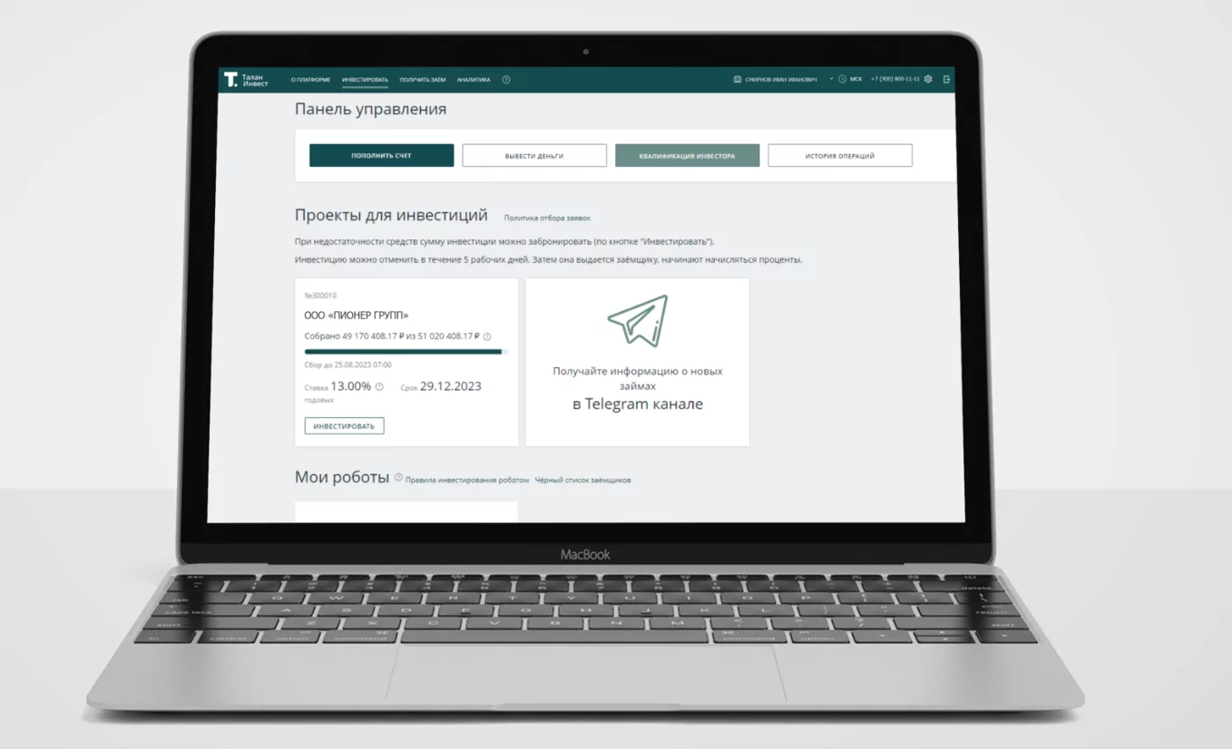 Личный кабинет инвестора на платформе ТаланИнвест