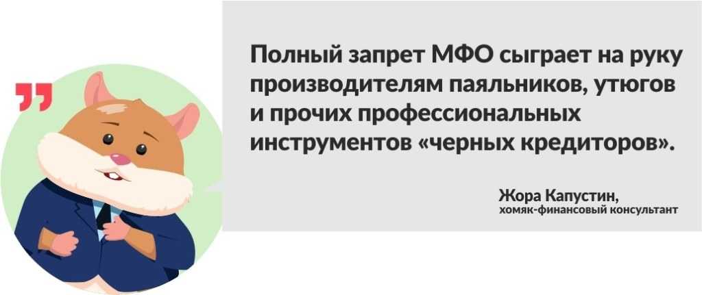 От полного запрета МФО эксперты предостерегают. Напоминая, что эти организации возникли не на пустом месте. На месте предшественников — нелегальных кредиторов, дававших деньги под залог паспорта. Их деятельность в нулевых вообще никто, кроме криминала, не контролировал. А раз есть спрос — всегда будет предложение.