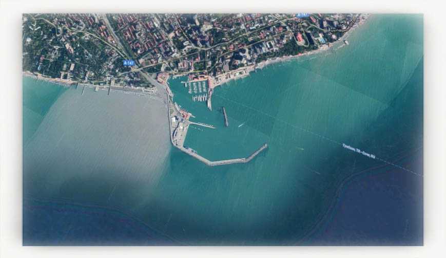 Здесь воду в море портит река Сочи, которая берёт своё начало в горах и протекает через весь город. На снимке из космоса мы видим то же самое: море рядом с впадающей рекой далеко не самое чистое