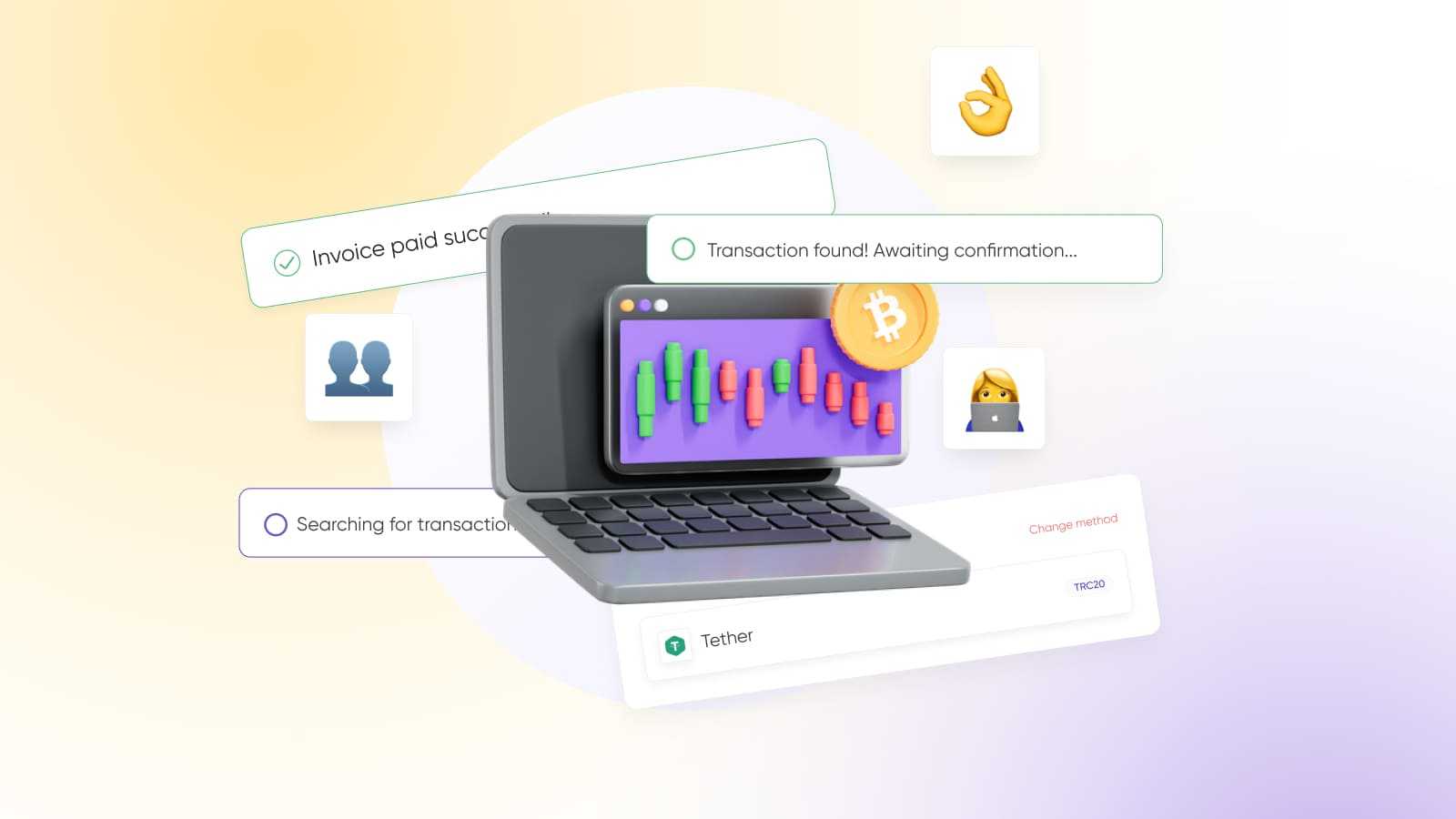 The service allows any user to buy cryptocurrency with a bank card. When paying an invoice in cryptocurrency, the user can instantly buy it in a separate window, and the payment invoice will be automatically confirmed.