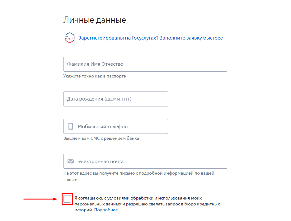 - На следующем шаге введите паспортные данные, информацию о месте работы, уровне доходов и пр.