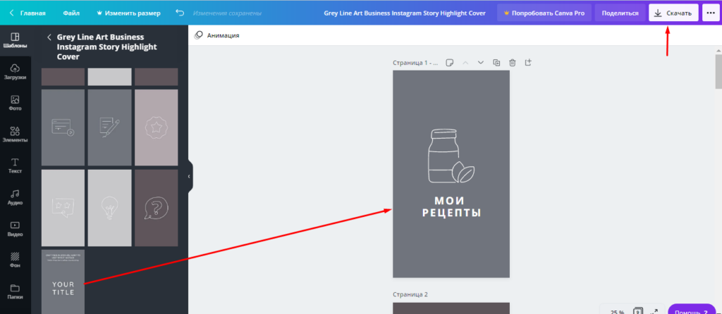 После финальных правок и корректировок сохраняем созданные обложки и загружаем их в хайлайты.