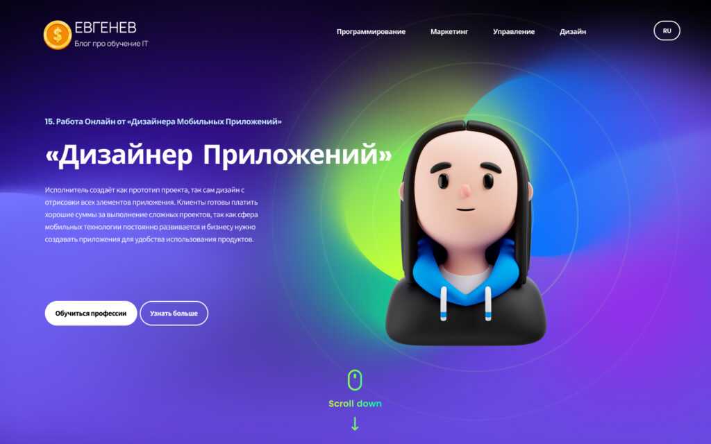 Следующая из работ на которую вам точно нужно обратить внимание – создание макетов дизайна для мобильных приложений. Суть профессии заключается в создании полноценного продукта с анимацией для дальнейшей разработки и выхода продукта на рынок