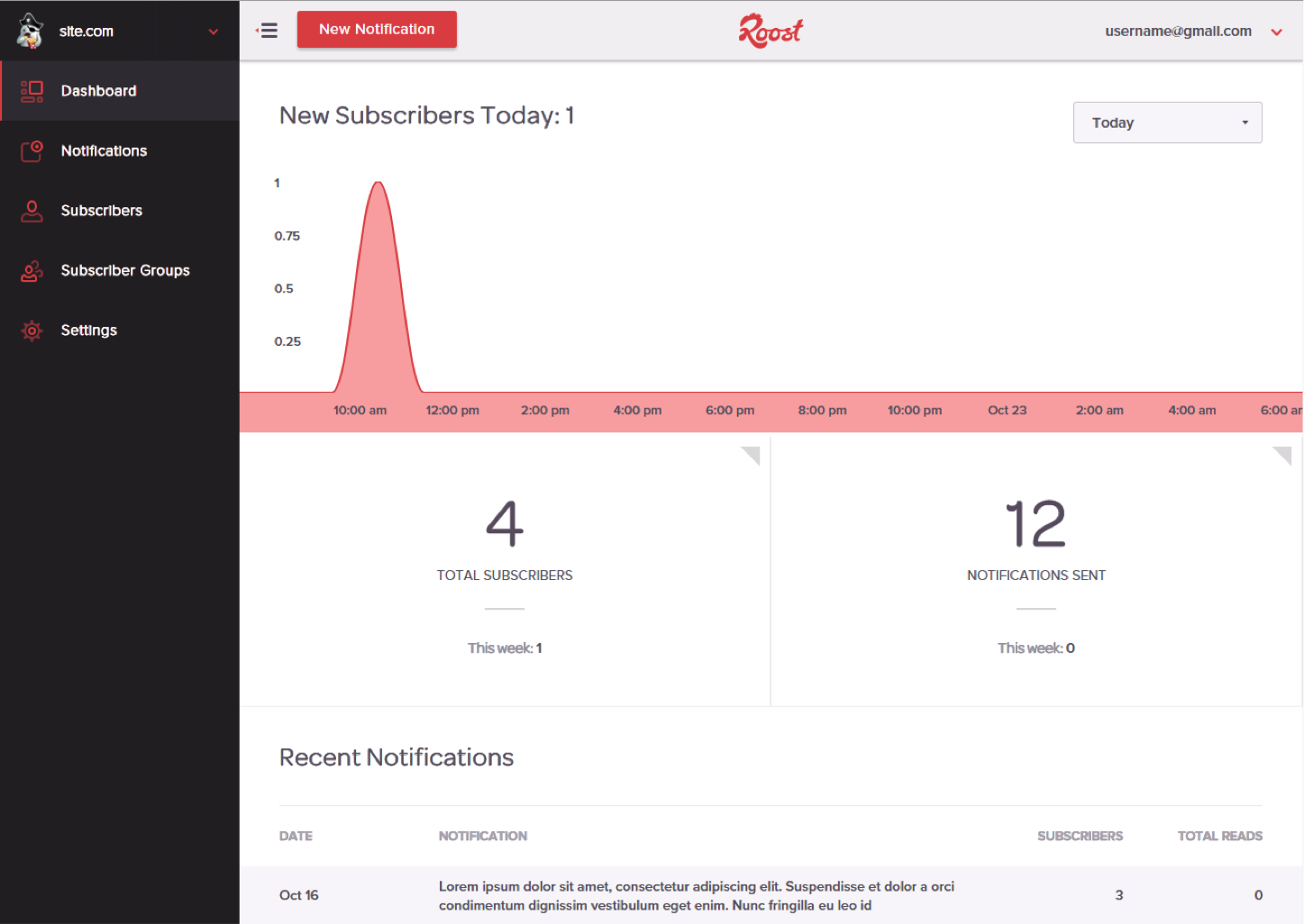 Сервис обладает стильным интерфейсом, но все еще находится на стадии beta-тестирования, поэтому встречаются сбои и ошибки. Из преимуществ панели стоит отметить отличную документацию, дополнительный виджет («колокольчик» с панелью всех уведомлений на сайте), white lable для домена сайта.