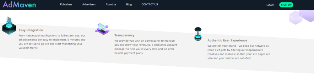 AdMaven взимает большую плату за тысячу показов. В результате получается больше дохода. Кроме того, у них есть запатентованная технология торгов в реальном времени (RTB), которая связывает разрозненные сети.