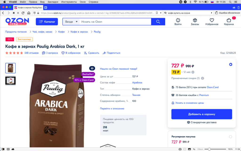 Для постоянных клиентов этот кофе стоит 727 рублей