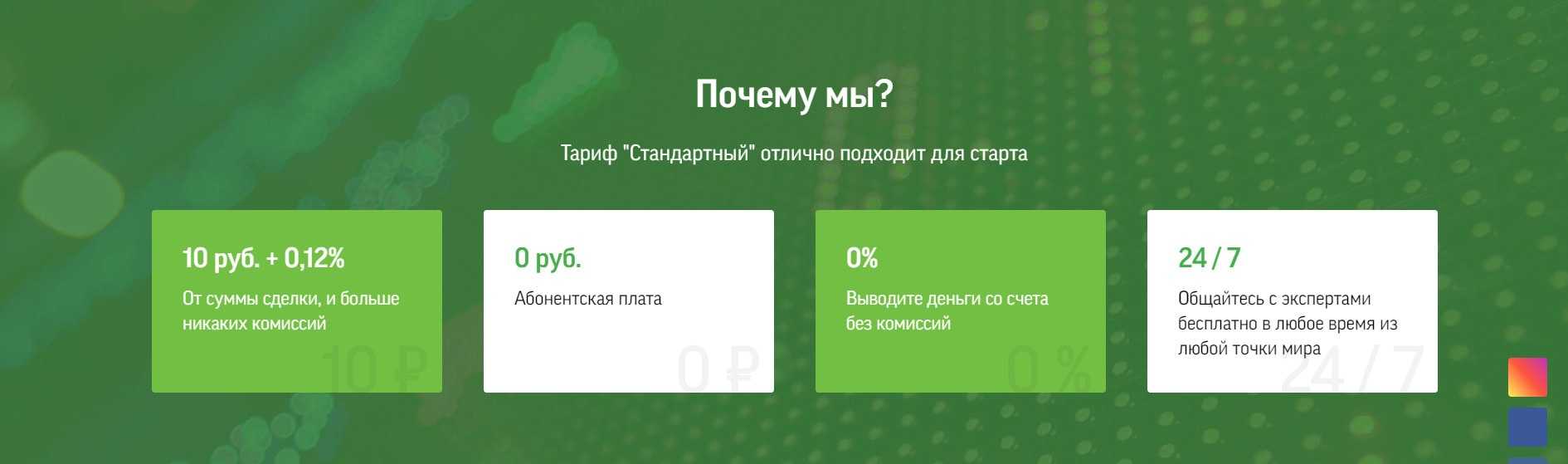 Неквалифицированным инвесторам компания предоставляет доступ на Московскую и Санкт-Петербургскую биржи и следующие тарифные планы: