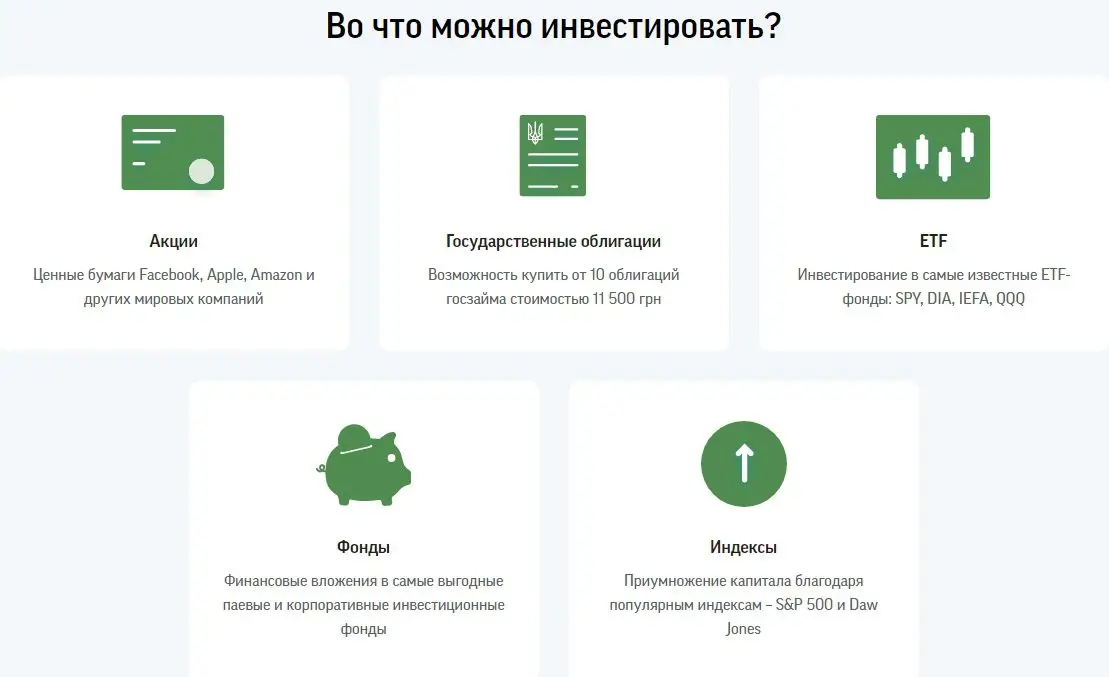 Основное направление – фондовые рынки, с акцентом на американские биржи. Компания работает на фондовых площадках РФ и Казахстана. Инвесторам предоставляется доступ к сделкам: