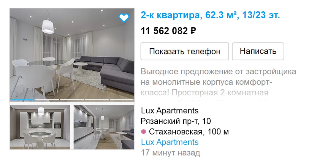 Услуга подключается на семь дней во всех категориях, кроме «Резюме», потому что в ней просмотр контактов платный. XL-объявление в поисковой выдаче выглядит крупнее остальных, а рядом с ним появляется подробное описание и кнопка «Показать телефон» или «Позвонить». Подключить услугу можно только на десктопной версии сайта.
