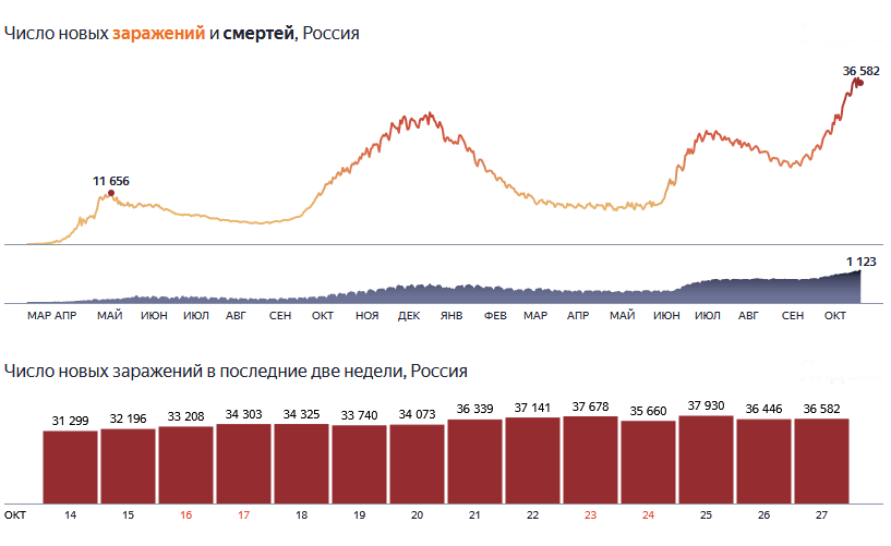 Заболеваемость коронавирусной инфекцией на территории России по-прежнему остается на высоком уровне. Сейчас школы и университеты страны находятся на каникулах, которые у большинства начались, как и нерабочая неделя: с 30 октября по 8 ноября 2021 года.