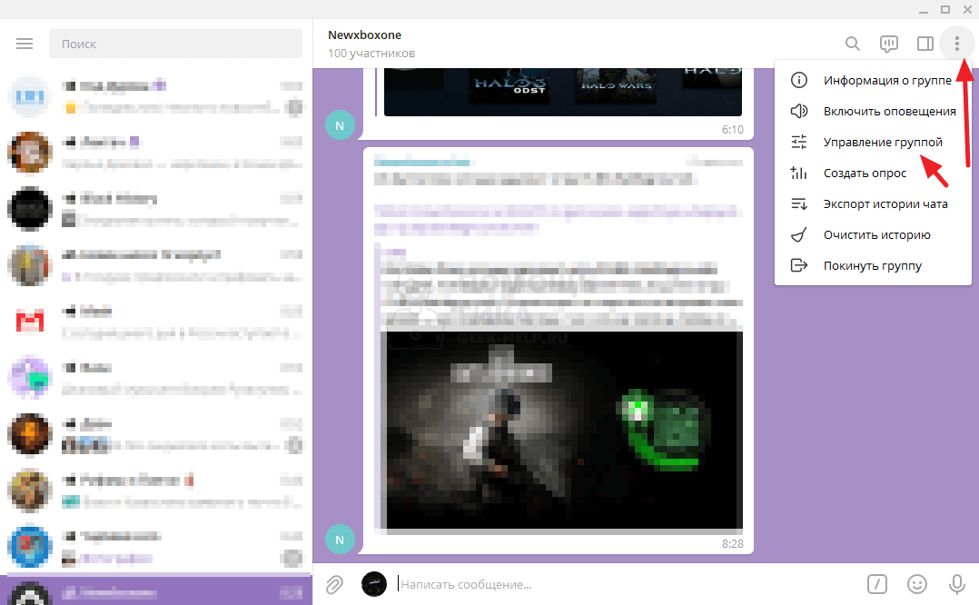 На компьютере. Чтобы на компьютере в канале или группе включить реакции, зайдите в нужный чат (где вы являетесь администратором) и нажмите в правом верхнем углу на три точки — выберите “Управление группой” или “Управление каналом”.
