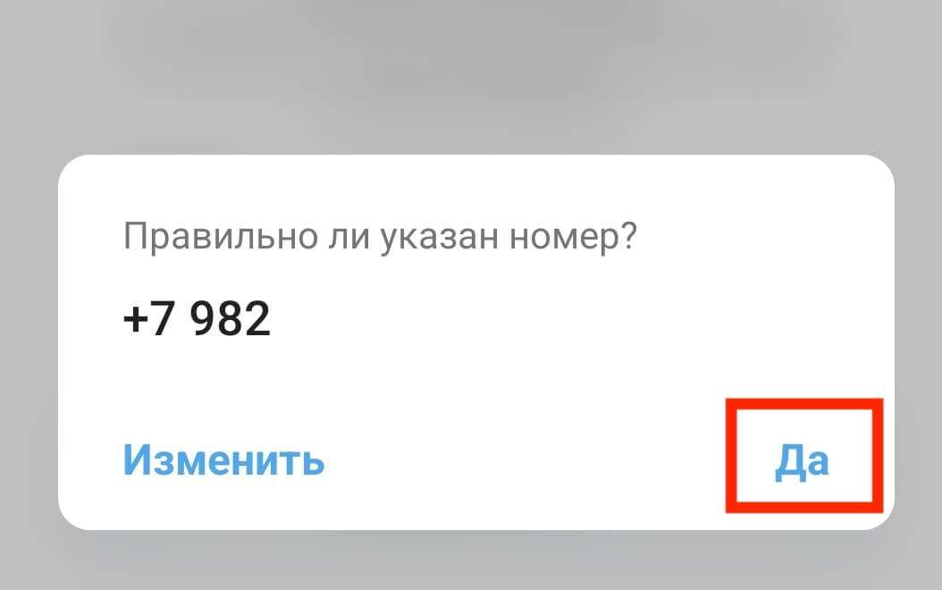 Проверяем номер и, если он указан верно, кликаем «Да», если нет, то «Изменить» и исправляем.