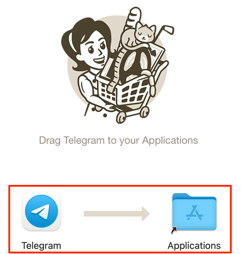 Дальше выполняем действия, предложенные программой. Перемещаем Telegram в папку Applications.