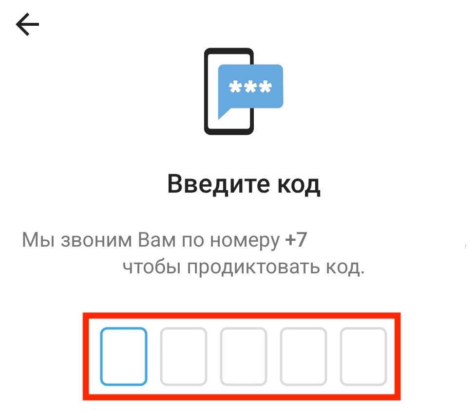Позвонит робот и продиктует код из 5 цифр. Вбиваем его в поле.
