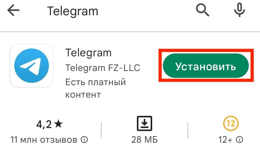 Чтобы установить приложение на смартфон, заходим в Google Play и в поисковой строке набираем Телеграм или Telegram.