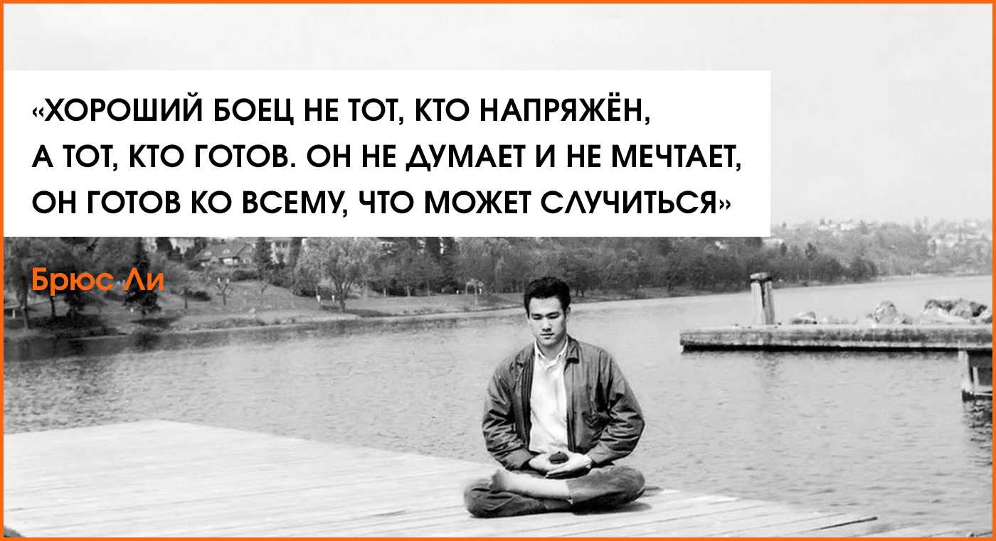 Сила, которой так мастерски владел Брюс, была результатом не только постоянных тренировок, но и энергии, которую он получил во время медитации, которая, как я уже говорила, была обязательной в распорядке дня многих великих людей. Об этом ритуале Брюс Ли говорил намного меньше, чем о тренировках, но его продуктивный день — это день, в котором обязательно был пункт «Медитация и психотренинг».