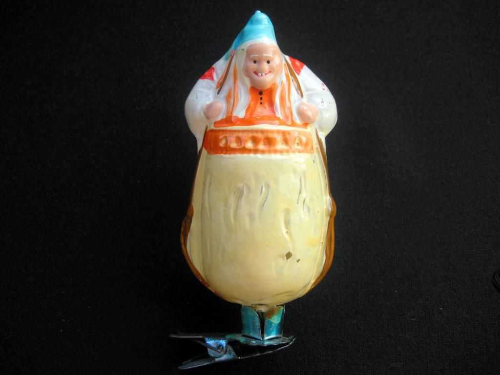 Фигурка из стекла на прищепке. На руках сказочный герой держит зайца. Краски яркие, видны перламутровые переливы. Изготовитель — артель «Культигрушка», стоимость — от 100 000.