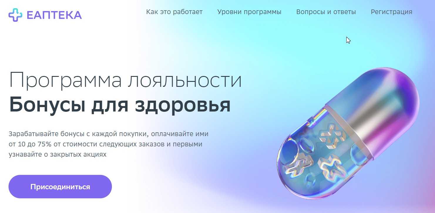 В Еаптеке действует программа лояльности Бонусы для здоровья. Оплачивая покупку, вы зарабатываете бонусы. Затем накопленными бонусами клиент сможет оплачивать от 10 до 75% от стоимости будущих покупок. Примечательно, что участники бонусной программы также первыми узнают о закрытых акциях. Кстати, первые 50 бонусов вы получите сразу после подтверждения номера телефона.