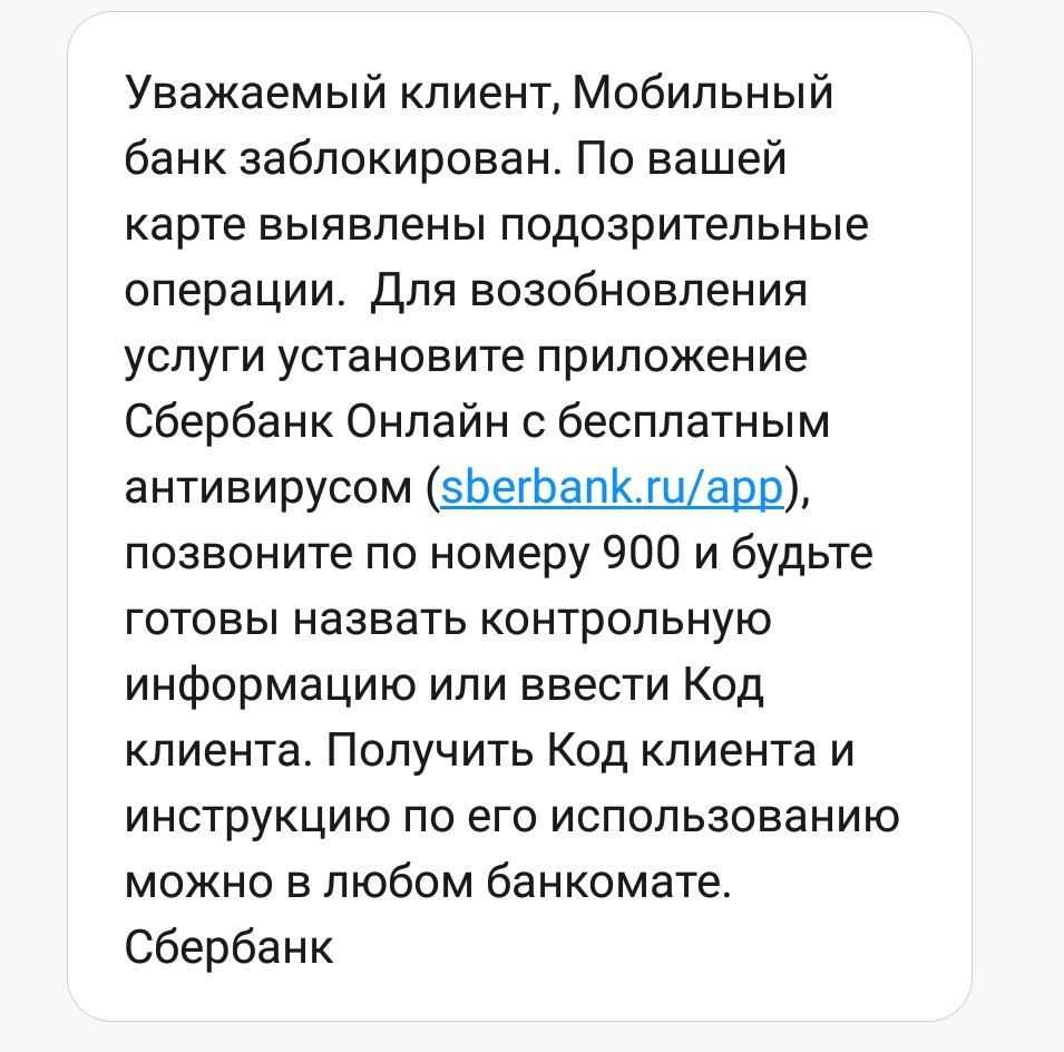Если вы получили подобное сообщение от Сбербанка — необходимо срочно звонить в контактный центр по номеру «900» (или через приложение). Специалист проанализирует блокировку и укажет вам на дальнейшие действия.