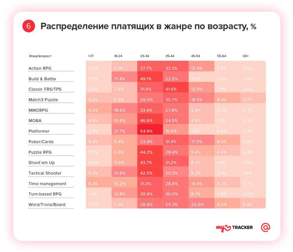 Геймеры от 18 до 24 лет — шутеры и платформеры.