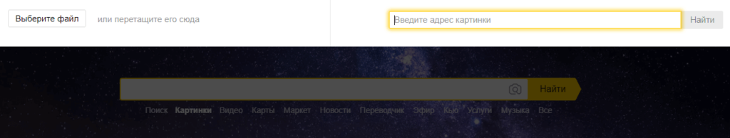 Технология одинаковая для всех приведённых выше сайтов. Нужно открыть соответствующий сервис в Google, Яндекс или TinEye. Нажать на значок фотоаппарата (у TinEye это будет иконка «Стрелка вверх»).