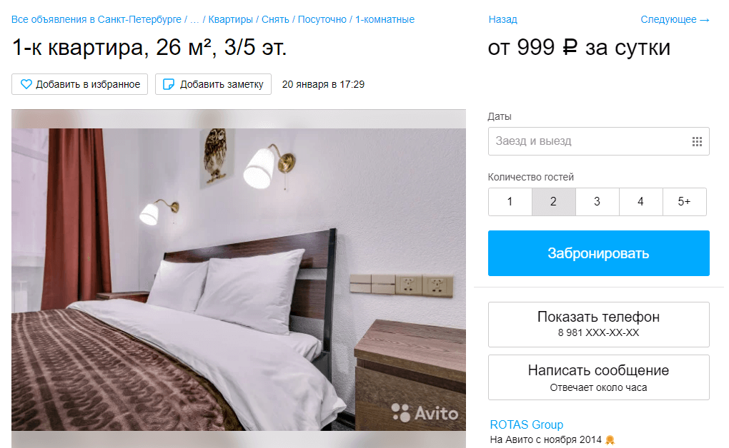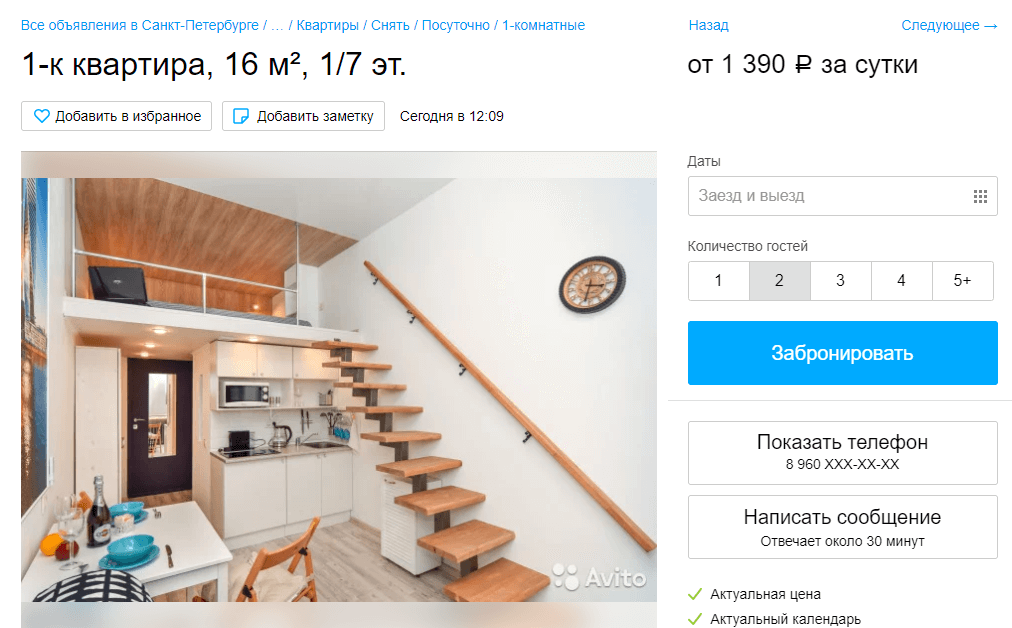 Квартиры мы подсмотрели на «Авито». Основные критерии — недалеко от метро и от центра, одна комната или студия, неделя в феврале, возможность онлайн-бронирования.