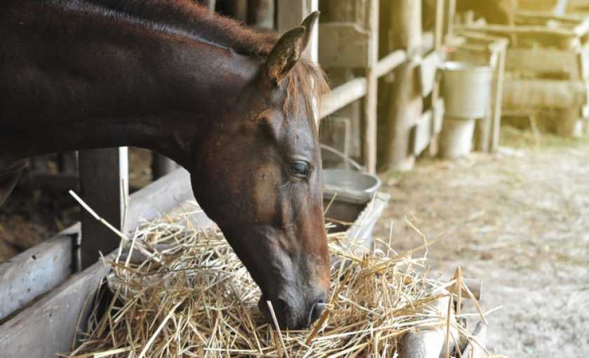 Незаменимо в рационе грубое сено. Сколько сена нужно лошади на зиму? До 10 кг сена можно скармливать в чистом виде. При большем объеме его следует нарезать и давать в смеси с концентрированным кормом.